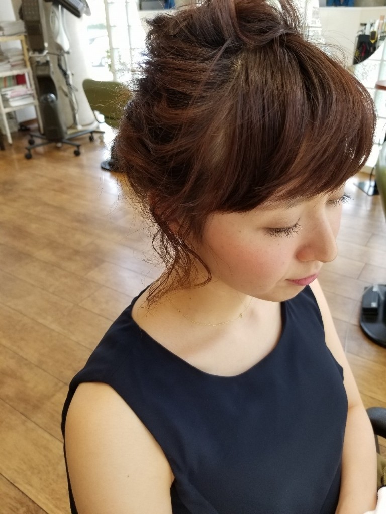 暑い中のご来店ありがとうございます♡ 結婚式お呼ばれ、アップスタイル~ あご下ボブくらいの短さでしたが、暑いのでアップにまとめて~ かわいい♡ 結婚式はどうでしたか~^^ また、おまちしてますねっ