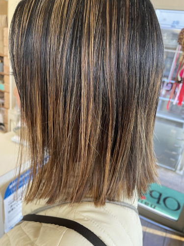 切りっぱなしボブ+ハイライト☆