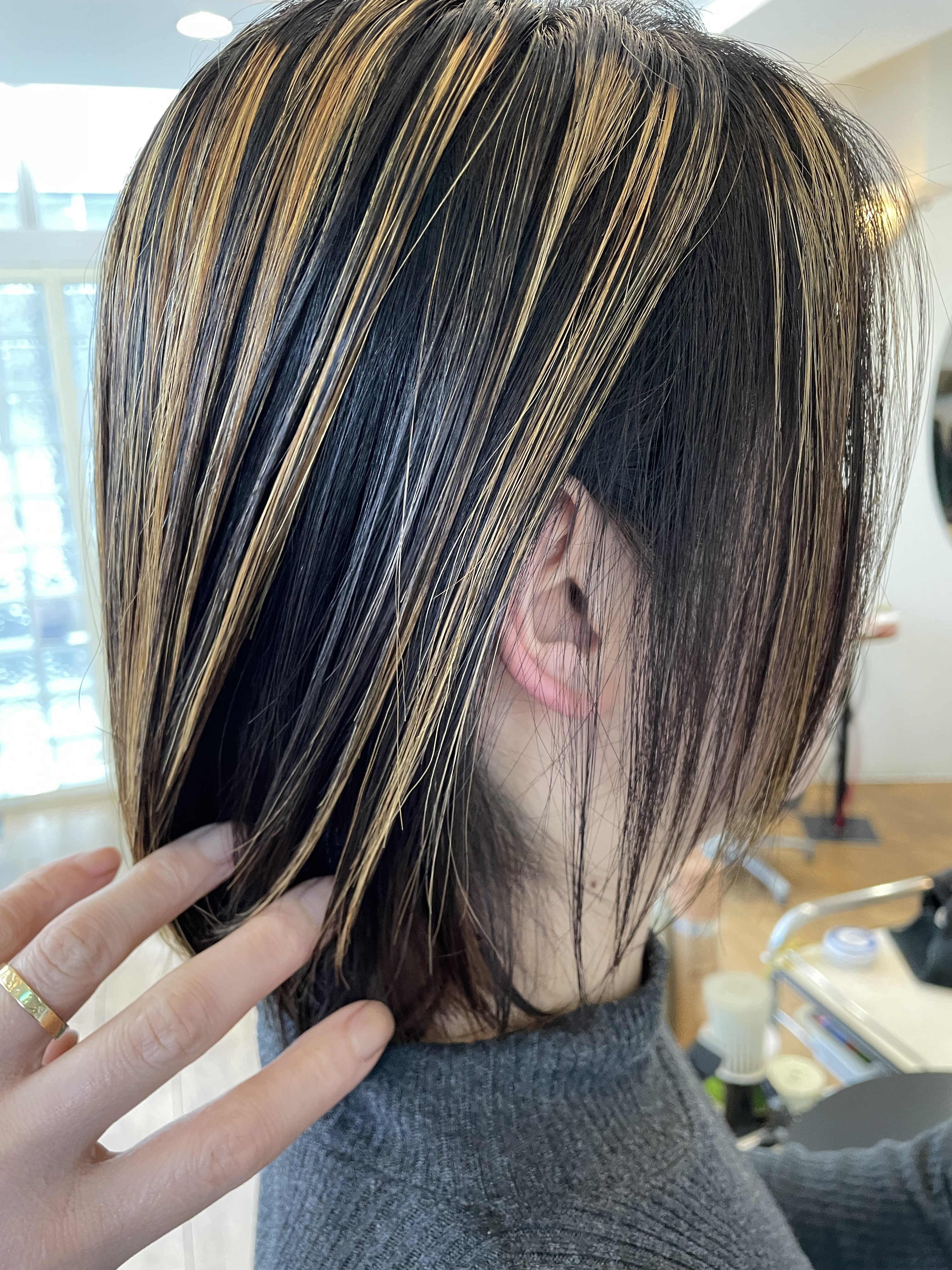 表面の明るさと内側の黒髪の