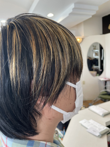 黒髪ベースで表面部分のみブリーチ!
